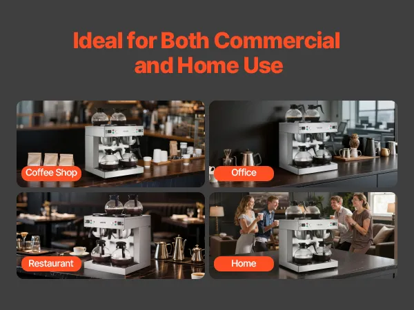 The size and performance of this drip coffee maker make it suitable for a variety of locations, whether in a café, office, restaurant, or at home.