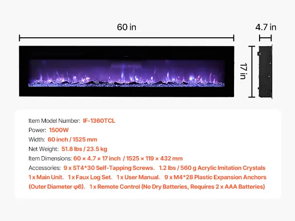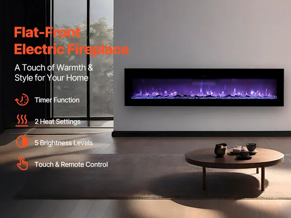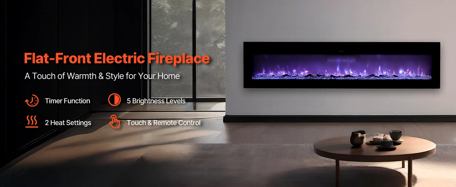 Easily change the look of your area. A wall-mounted electric fireplace adds a modern and clean look to any location. It complements modern design and requires minimal floor space. You can hang it on the wall or put it in a cut-out for a smooth, clean effect. The fireplace features a beautiful black metal frame and tempered glass, which makes your home look more expensive. It's easy and quick to install, allowing you to achieve a polished, built-in look without trouble. Enjoy the mix of warmth and style. It makes every room feel like a warm place to stay.