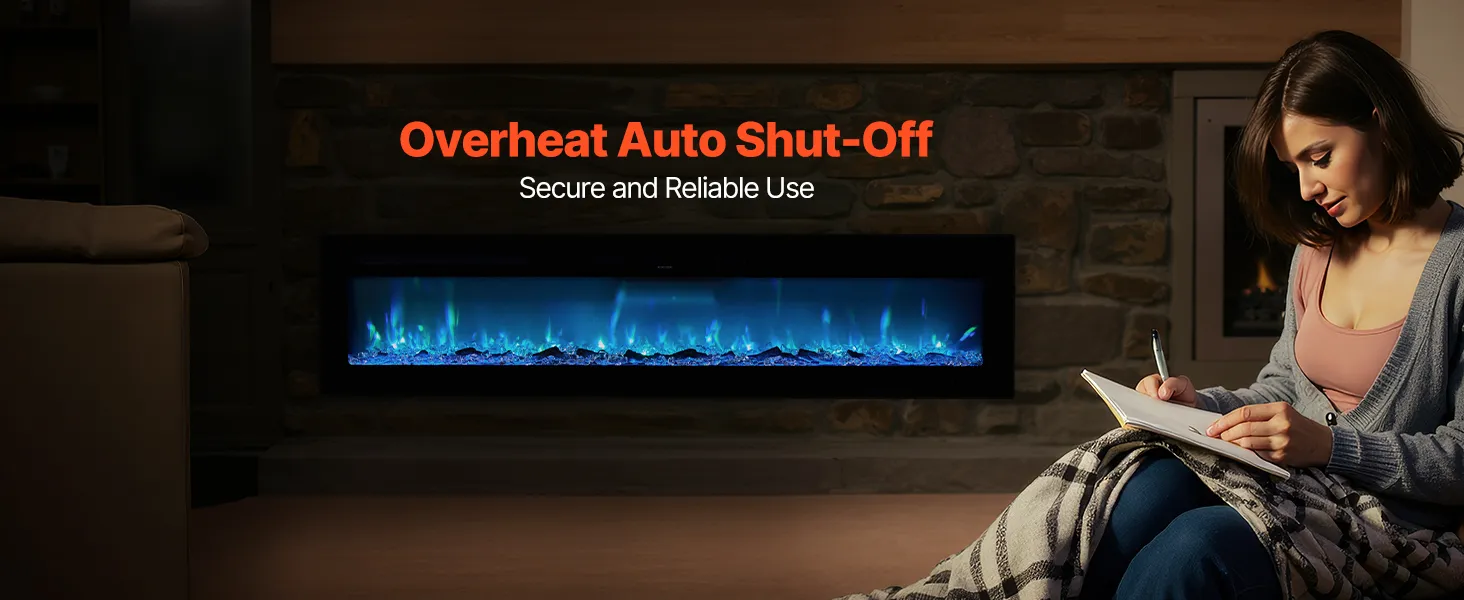 You can relax, knowing you're safe at home. The wall-mounted electric fireplace features a clever overheat prevention mechanism. This innovative system provides you with peace of mind. It turns off automatically if the temperature inside becomes too high. This functionality makes it a fantastic option for families with pets and kids. The front glass also remains cool, making it even safer. The parts have been thoroughly tested and verified to meet stringent safety standards. It guarantees they will withstand prolonged use. Relax and enjoy the warmth and beauty. This fireplace comes with comfort and safety.