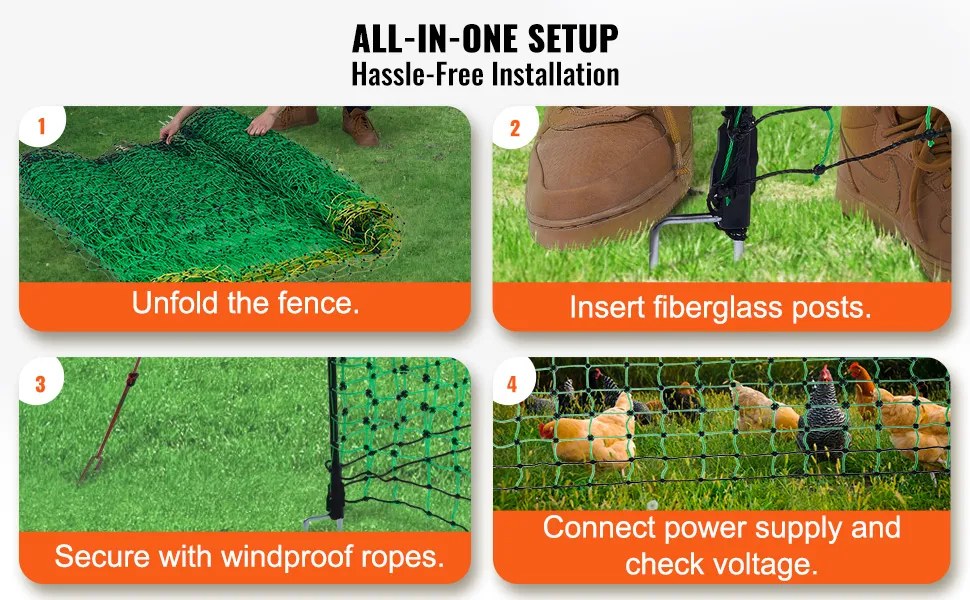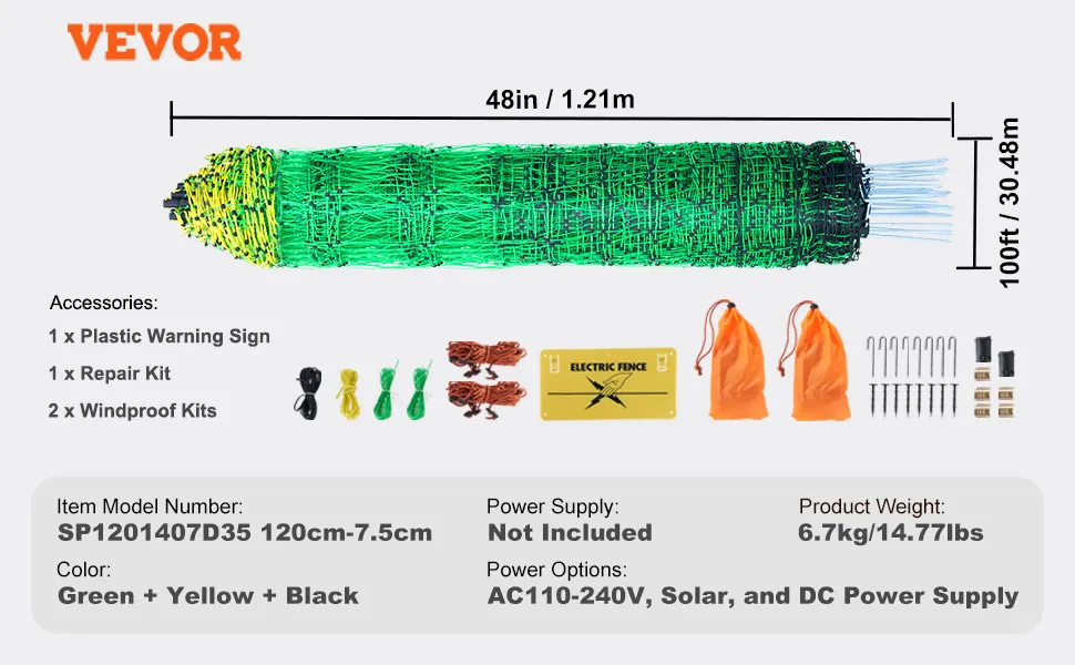 The VEVOR backyard electric netting offers multiple power options. You can use AC 110-240V, solar panels, or DC power. This makes it versatile and energy-efficient. Choose the power source that best suits your farm. Using solar power makes this option eco-friendly. The netting is designed to be portable too. So, you can move it around your farm as needed. This flexibility is ideal for different needs. Multiple power choices ensure the netting remains effective. Additionally, reducing energy consumption provides a cost-effective solution for your farming.