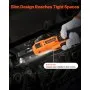 Flexible Build: The cordless ratchet set features a 3/8" short head with an extended neck, designed for furniture gaps, engine bays, or behind pipes. The built-in LED light illuminates dark areas, improving precision and security in low-light tasks
