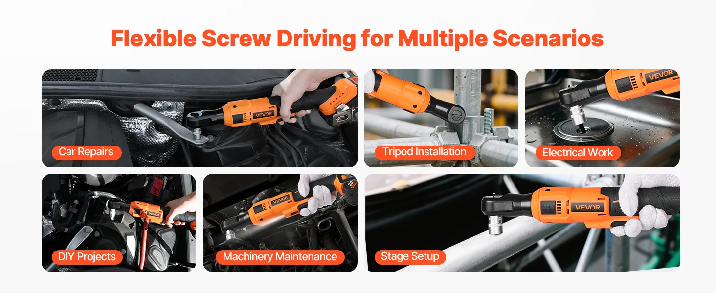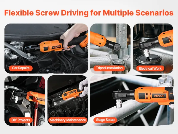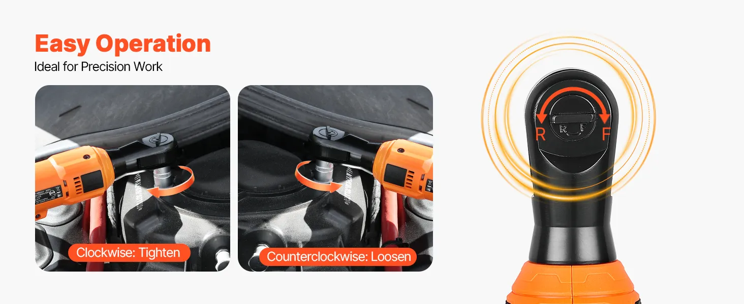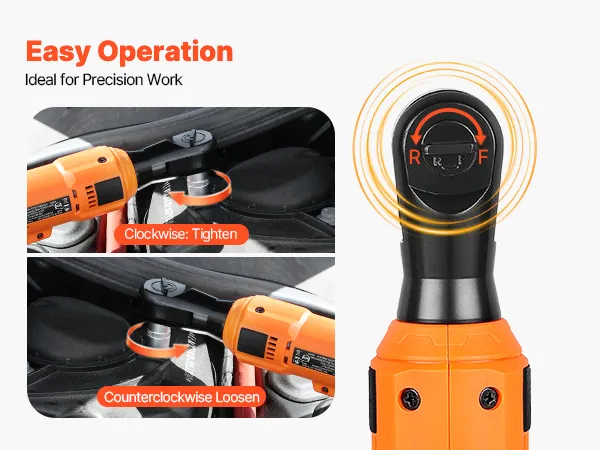 Precise Fastening: Our electric ratchet wrench supports a forward and reverse switch, handling tightening and loosening with ease. The ratchet head ensures a firm grip on nuts and bolts, fit for engines and machinery without stripping or damaging