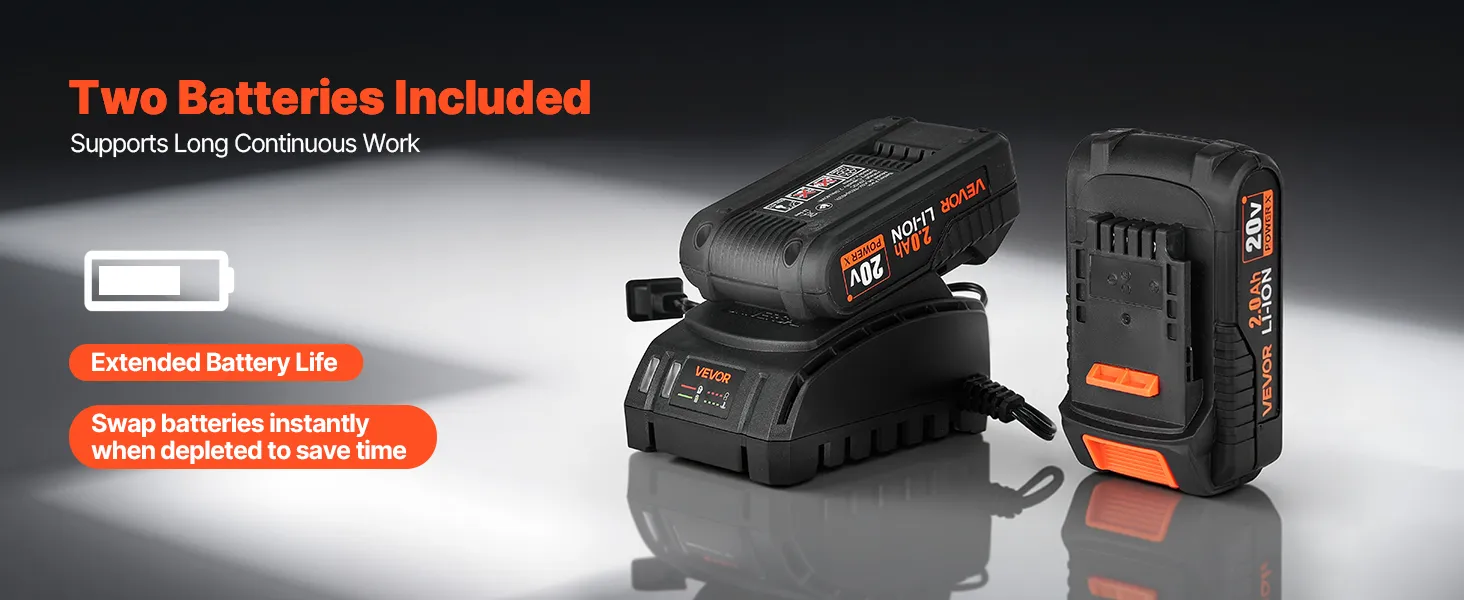 Long-Lasting Power: This electric wrench has two swappable and alternative 2000mAh rechargeable lithium batteries. It enables extended tasks like workshop repairs or outdoor projects, while ensuring durability through multiple recharge cycles