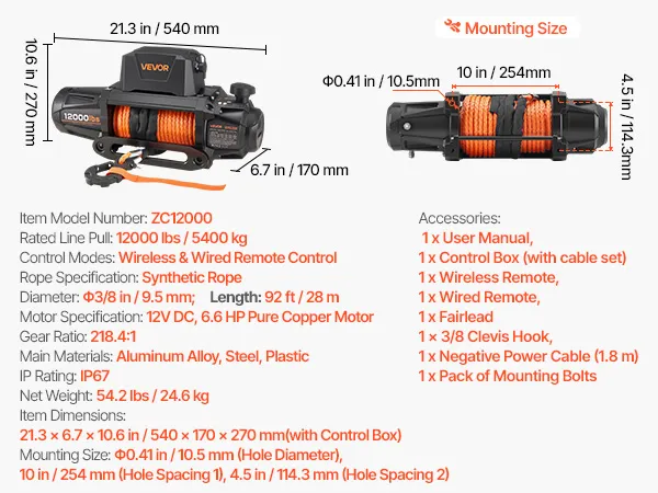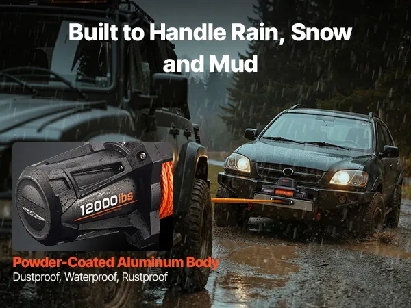 12000 lbs Strong Pull: This electric winch delivers 12,000 lbs pulling force, making SUV or pickup recovery from mud or sand quick and stress-free without gear distortion worries