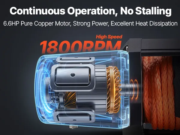 High-Power Rescue: The 6.6HP motor of the jeep winch with a 218.4:1 3-stage planetary gear gives steady pulling power. A 59 ft wireless remote ensures secure control, while a 9.8 ft wired remote adds backup support