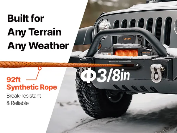 Durable Synthetic Rope: The 3/8 in x 92 ft rope of the truck winch is made of 12-strand polyethylene, built to handle UV and wear. Even with strand friction, the rope stays strong, ideal for towing vehicles on steep terrain