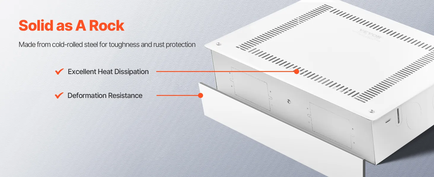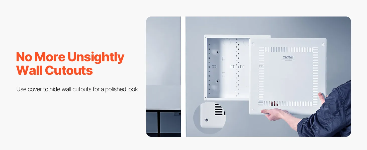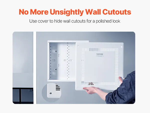 The VEVOR In-Wall Media Enclosure is easy to install. Start by checking the user manual to pick the best spot on your wall. Once you’ve marked the location, cut an opening that fits the enclosure. Place the box into the wall and secure it firmly to the studs. After that, route and connect your cables inside the box. Finally, attach the detachable cover plate that will hide the cutout edges and give your setup a smooth, professional finish.