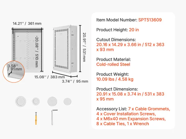 Tired of tangled cables and cluttered media components? Our 20-inch recessed media box ensures effortless in-wall storage and structured wiring with ample room, easily fitting into your wall. The cold-rolled steel construction is built to last, while the detachable cover for easy access.
