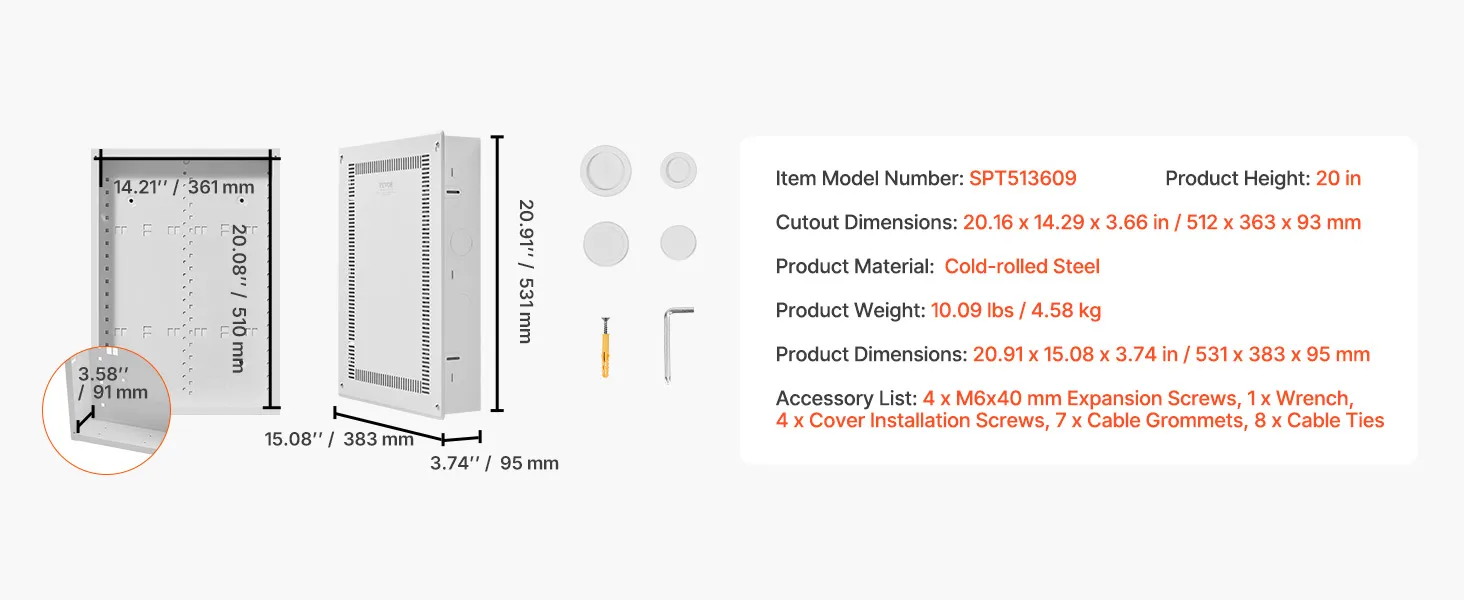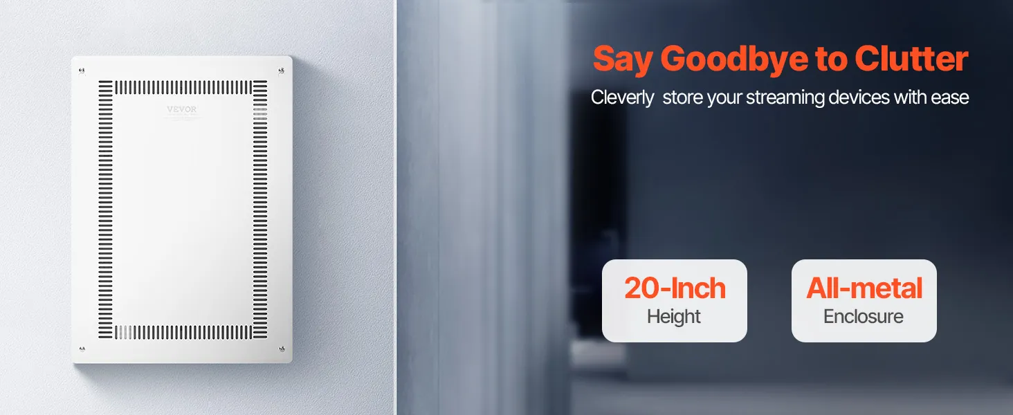 VEVOR Structured Media Enclosure, 20-Inch, Recessed in-Wall Media Box with Cover, Wall-Mount Cable Management Box Kit, Structured Wiring Multi-Media Cabinet, Cold-Rolled Steel, for TV Home Theater