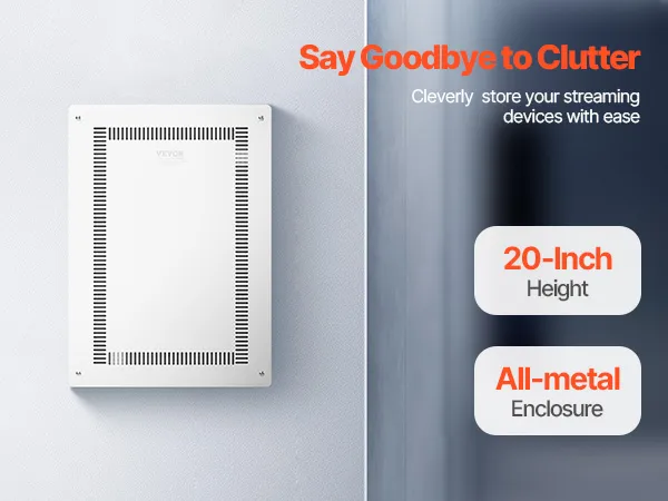 20-Inch In-Wall Media Box: Providing ample space for all your devices, this structured media enclosure easily accommodates routers, switches, soundbars, streaming devices like Roku, Apple TV, and AV receivers. Maximize your space while keeping all your entertainment equipment organized and easily accessible