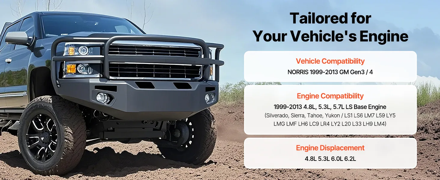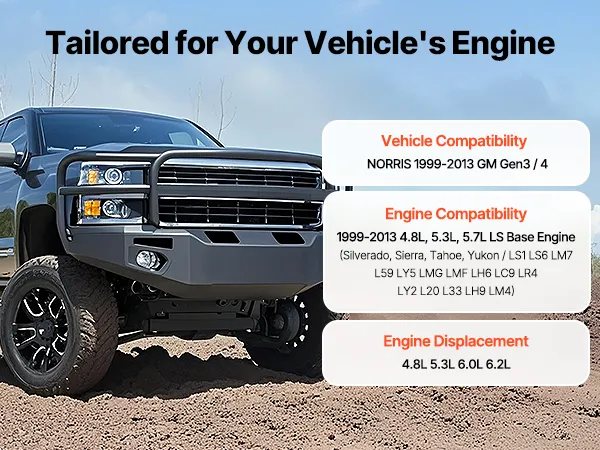 High Compatibility: Our lifters camshaft kit is compatible with NORRIS trucks from 1999-2013 GM Gen3/4. Fits 1999-2013 LS-based engines (Silverado, Sierra, Tahoe, Yukon/LS1, etc.), suitable for 4.8L, 5.3L, 6.0L, and 6.2L engine displacements. For more compatibility details, please refer to the image.
