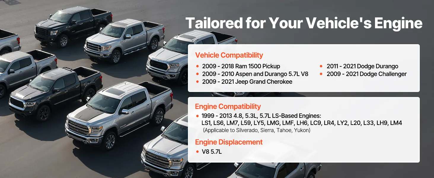A variety of automobiles, including trucks, cars, and SUVs, are compatible with this kit. It is compatible with GM LS based engines manufactured between 1999 and 2013, including the 4.8L, 5.3L, and 5.7L platforms found in Silverado, Sierra, Suburban, Tahoe, and other comparable models. Additionally, it is compatible with 2009–2021 Dodge Challengers and Jeep Grand Cherokees. Because of their broad compatibility, these camshaft lifter kits are ideal for servicing multiple vehicles, and replacement parts are generally easy to locate.