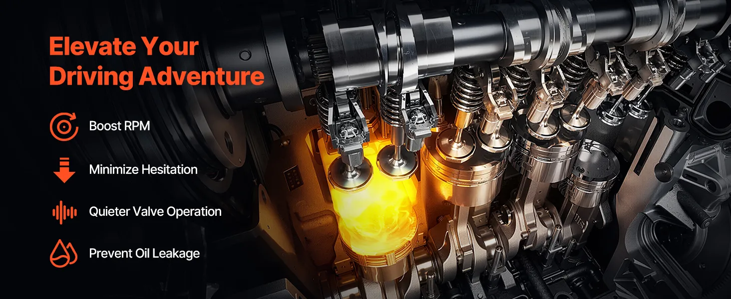 The valve seals, cylinder head gaskets, intake gaskets, and plugs are manufactured to OEM specifications to prevent leaks in high-mileage engines. These seals prevent coolant or oil from entering the cylinders, maintaining stable combustion and compression. Additionally, proper sealing reduces the possibility of misfires, overheating, or lubricant contamination while maintaining a constant power flow.