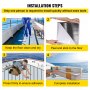 VEVOR boat decking sheet installation steps: clean, position, peel, stick, complete.
