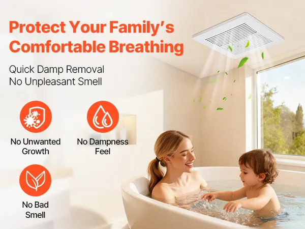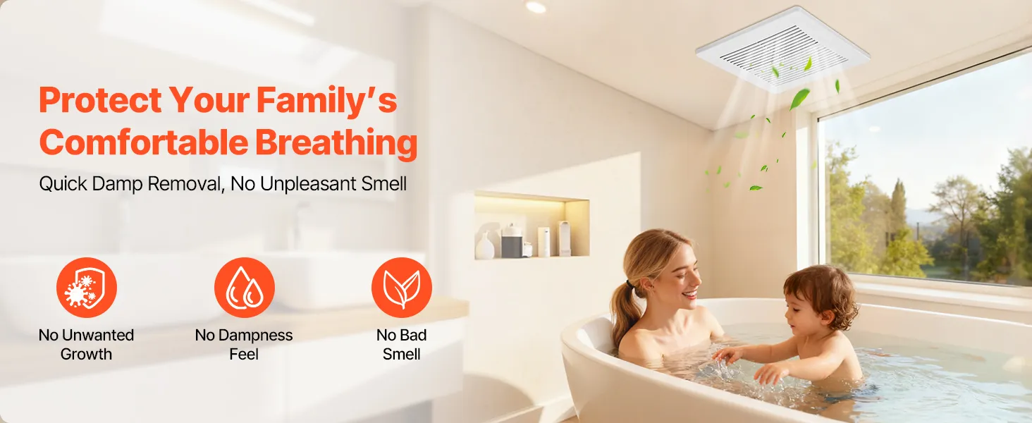 Efficient ventilation quickly keeps your bathroom dry and comfortable, promoting cozy breathing for your family.