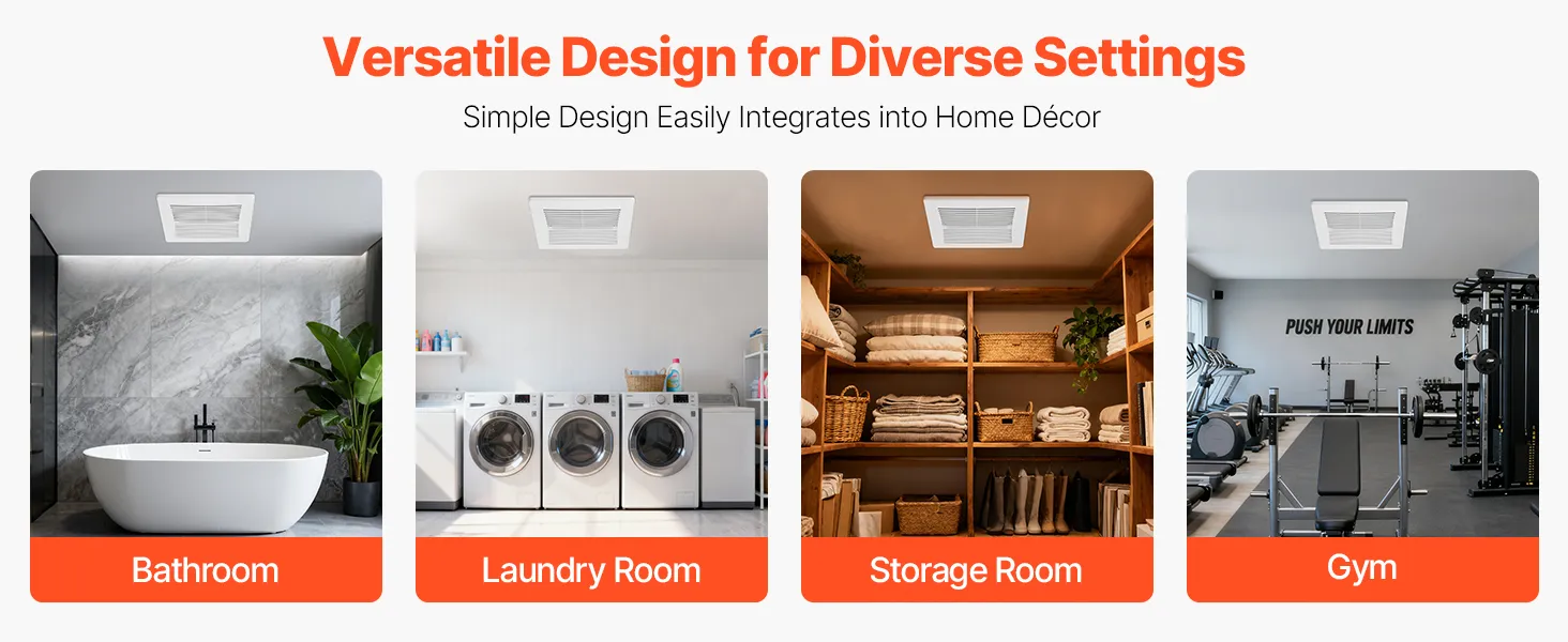 Stylish Design: ETLus certified, this bathroom vent fan features a damp-resistant housing and sleek white finish to complement any décor. Suitable for bathrooms, basements, laundry rooms, and home offices
