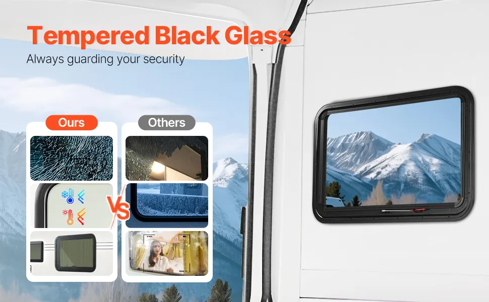 Enhanced Privacy & Durability: Made with 3.2mm black tempered glass, this wear-resistant RV window replacement offers outstanding durability. The tinted design not only provides enhanced privacy but also gives the window a sleek, modern look, adding security and style to your journey.