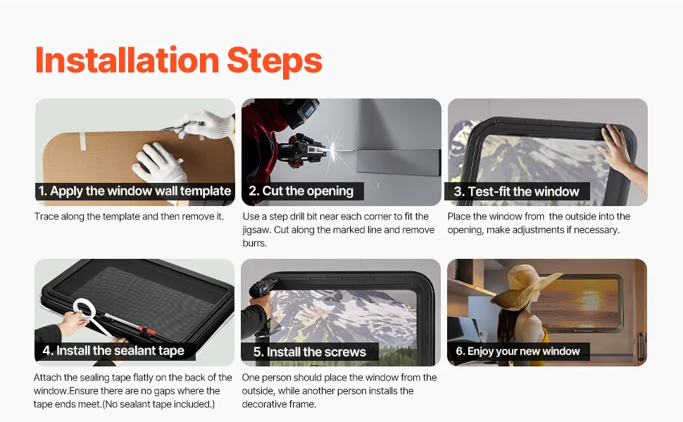Easy to Install: Our exit RV window ensure a precise and hassle-free installation with the included window wall template. This template allows you to easily mark the cutting lines, significantly reducing the risk of cutting errors. Save time and effort, and achieve a perfect fit for your window with no need for repeated measurements.