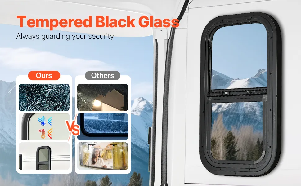 Enhanced Privacy & Durability: Made with 3.2mm black tempered glass, this wear-resistant RV window replacement offers outstanding durability. The tinted design not only provides enhanced privacy but also gives the window a sleek, modern look, adding security and style to your journey.
