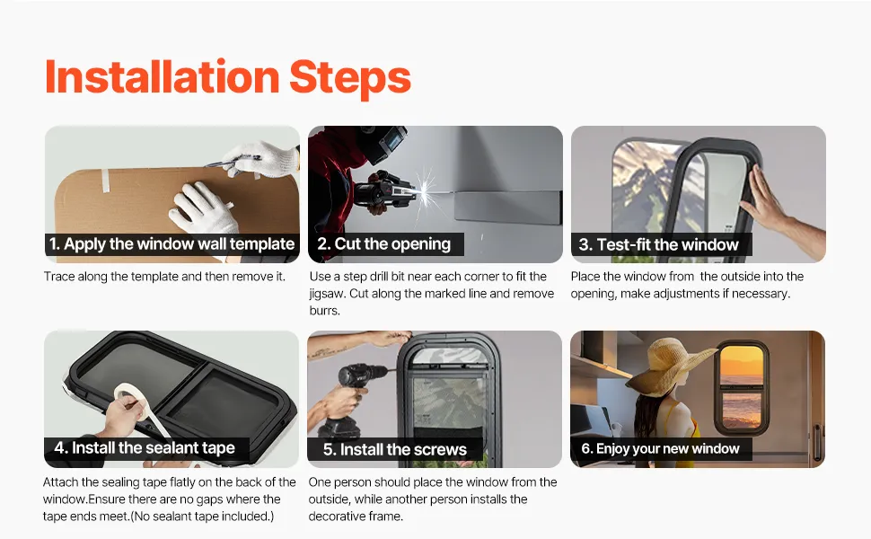 Easy to Install: Our vertical RV window ensures a precise and hassle-free installation with the included window wall template. This template allows you to easily mark the cutting lines, significantly reducing the risk of cutting errors. Save time and effort, and achieve a perfect fit for your window with no need for repeated measurements.