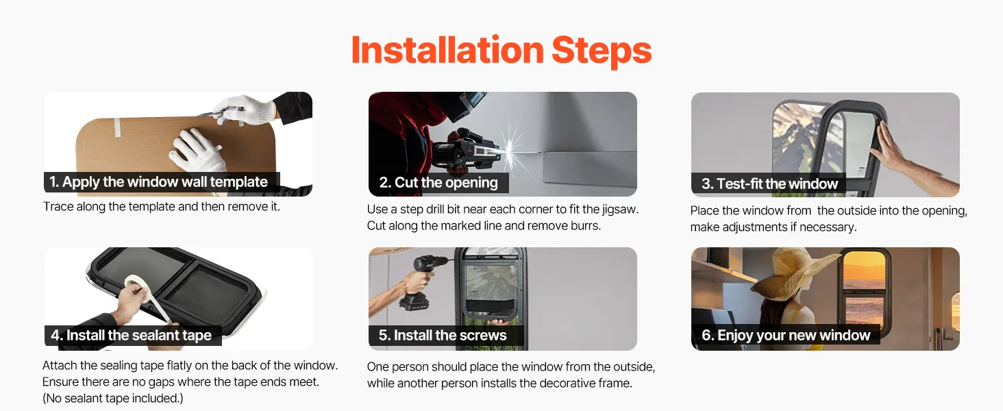 Even a beginner can install this RV window. It includes a pre-fitted wall template that indicates the precise section of your trailer wall to be cut. It guarantees accurate positioning and minimizes installation errors. You can cut it once and have the right fit the first time with the proper markings.