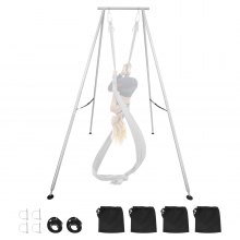 VEVOR Yoga Stand Frame, Max 440.9 lbs Load Swing Stand, Triangular Structure Aerial Rig, Aerial Silk Stands with EVA Foam & 6.6-yard Yoga Hammock, 4-Level Horizontal & 6-Level Vertical Adjustment