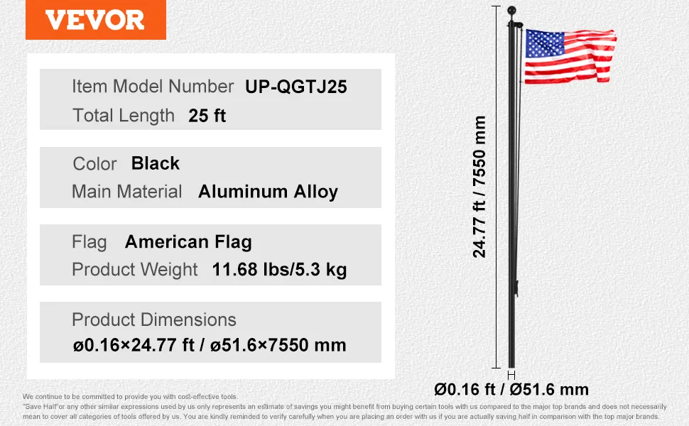 Perfect for outdoor display. It can be used in yards, squares, and commercial spaces. This flagpole kit is made from high-strength aluminum alloy, which is lightweight yet strong. The flagpole is treated for wind and rust resistance. It can handle high wind loads. The oxidized surface treatment enhances its durability, ensuring long-lasting aesthetics. Our flagpole is suitable for various harsh environments. We recommend using all necessary accessories. Easy assembly and installation: The kit includes all necessary accessories, making it easy to assemble and install. This flagpole stands straight even on windy days, making it a reliable choice for any outdoor display!
