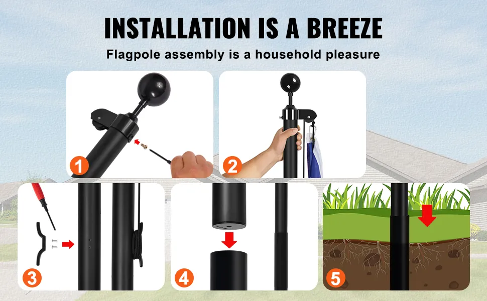 This flagpole kit is easy to install and adjust. The kit includes detailed installation instructions. It also comes with various accessories. These include PVC pipes, balls, and aluminum clips. The installation process is straightforward. It is ideal for users who prefer to assemble it on their own. Homeowners and veterans will find it easy to use. You can change the height anytime you want. This makes it versatile for different display needs. Easy installation ensures a hassle-free setup. Your flag will be proudly displayed in no time.