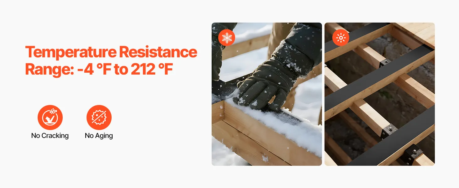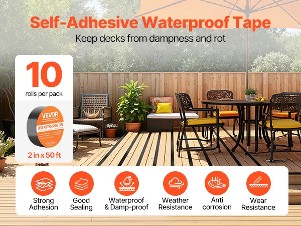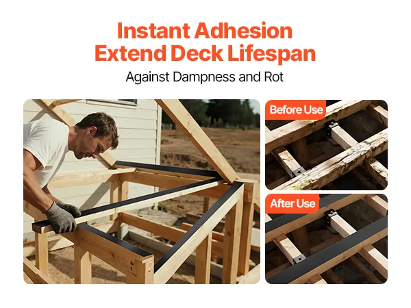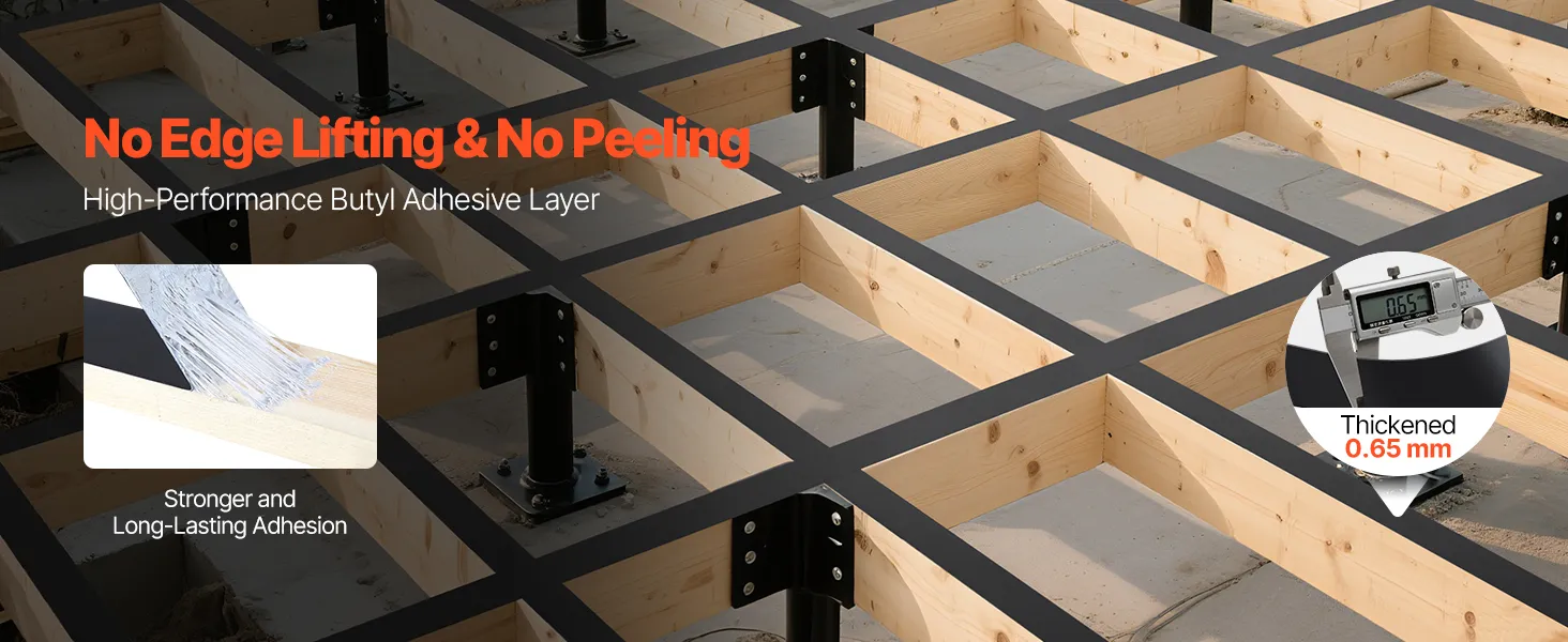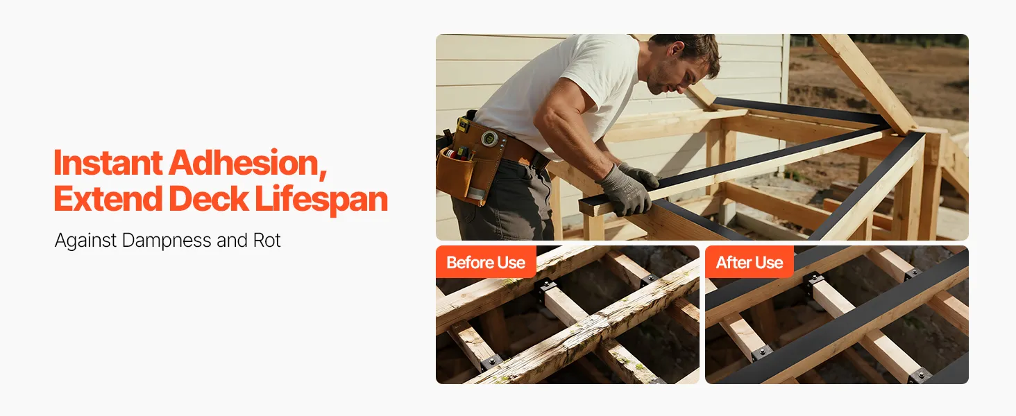 Waterproof & Anti-Corrosion: This joist tape for decking features water and tear resistance for blocking cracks and humidity. It shields wood, joists, plastic, and metal, enabling them to be waterproof and anti-corrosive with a prolonged lifespan