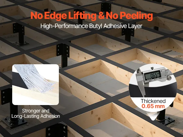 This deck joist tape is suitable for water-prone areas such as the top of deck joists and connection joints, which provides protection and keeps structural damage and rot from water accumulation, reducing replacement costs.