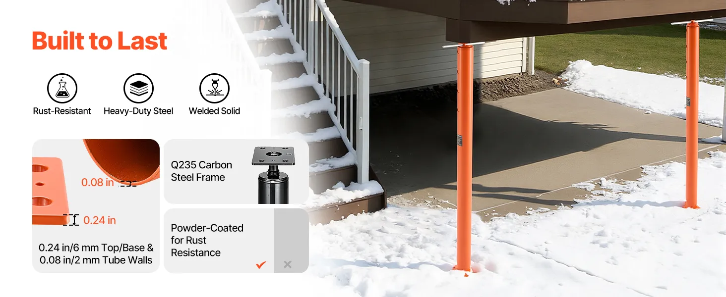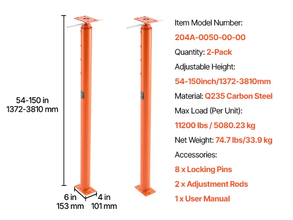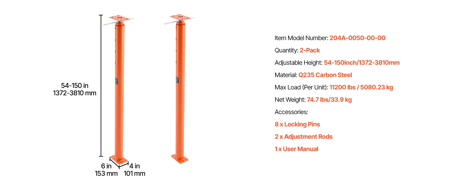 Heavy-Duty Support: Our adjustable jack post is built from tough Q235 steel. Each jack handles up to 11200 lbs/5080.23 kg with ease—great for heavy lifting