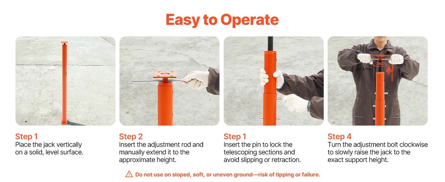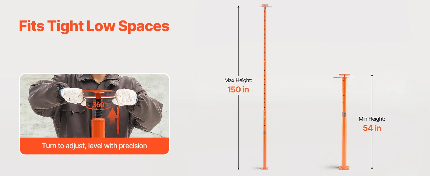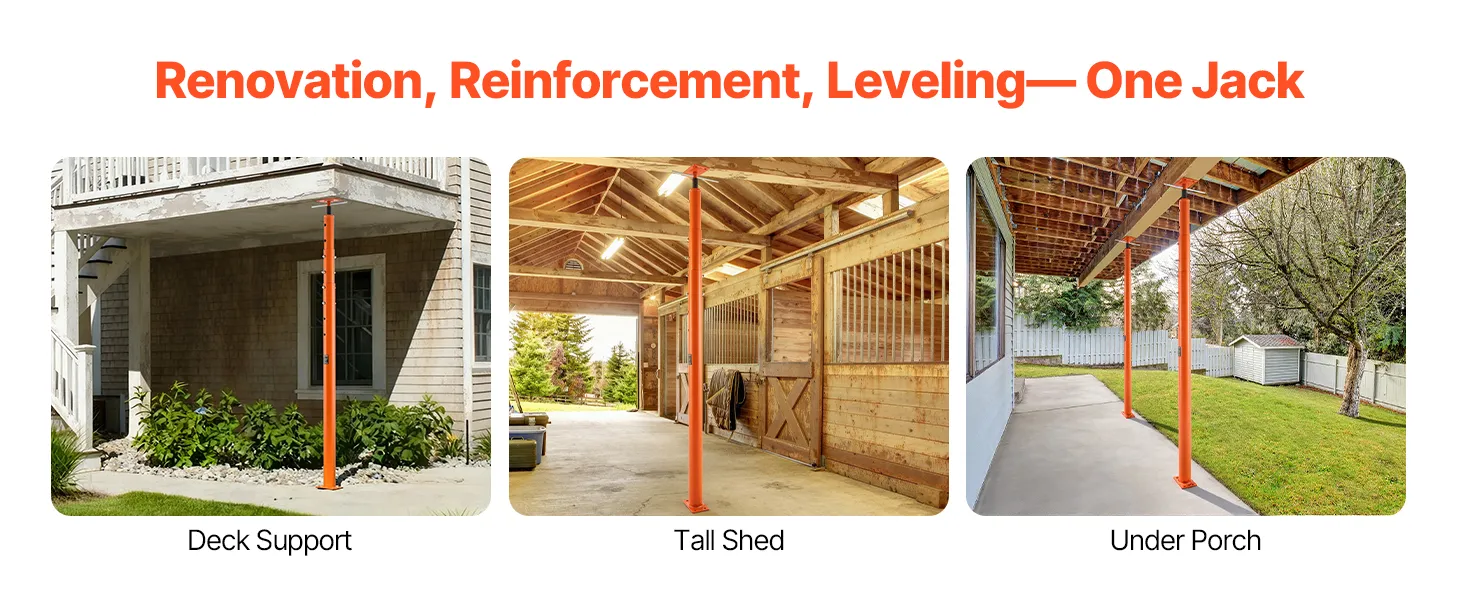Versatile Application: Our floor joist jack boasts an excellent load capacity and unique adjustable height design. Ideal for temporary support in various places like beams, patios, and construction—this jack does it all