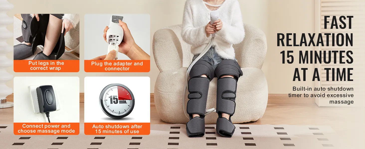 Safety is a top priority with this leg massager for swelling. It comes with a 15-minute automatic shutdown timer, which prevents excessive usage and ensures safety. It is advisable to be aware of this feature, especially for those who tend to fall asleep during the massage. The timer ensures the massager stops automatically, preventing any potential harm. This makes it a safe and reliable option for everyone. You can enjoy the benefits of massaging without worrying about safety issues.