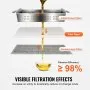 The product description states that it removes over 98% of impurities from used oil when used with a Vevor fryer filter, preserving the flavor of fried foods.