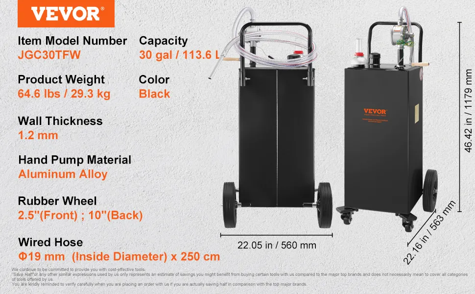 Using the VEVOR 30 gallon fuel caddy is cost-effective. It eliminates the need to purchase and maintain multiple small containers. By consolidating fuel storage into one large caddy, you save money and space. This solution offers better value than using multiple smaller fuel cans. Cost savings are significant, especially over time, as you reduce frequent trips to the gas station.