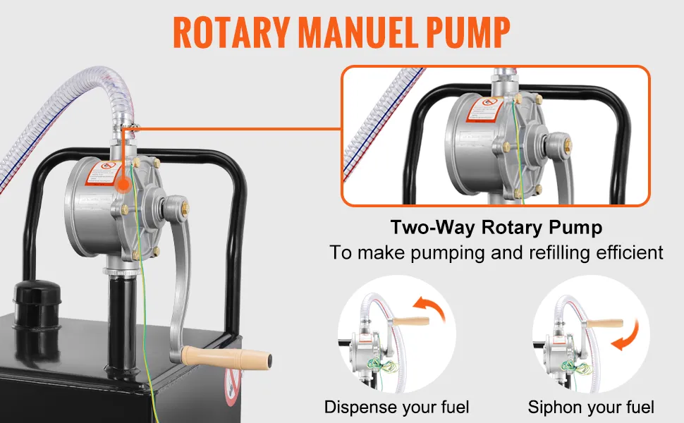 The manual transfer pump included with this caddy is efficient and simple to use. You can dispense fuel quickly without needing electrical power. The pump works with a simple crank mechanism, requiring minimal effort to operate. This system is ideal for use during power outages, guaranteeing you have fuel when needed. Manual operation ensures that you can use the pump in remote locations without relying on electricity.
