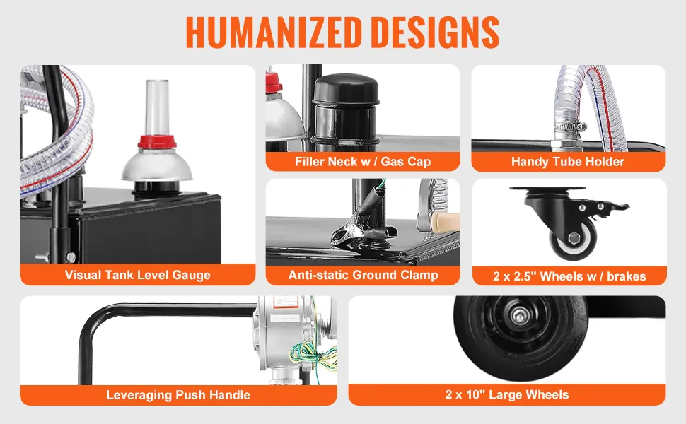 This feature is essential for maintaining a clean and safe environment where fuel is used frequently. We designed the VEVOR 30 gallon fuel caddy to store fuel without any leaks. It keeps your gasoline, diesel, or kerosene secure. This design reduces the risk of accidents, ensuring safety at all times. You can trust the caddy to keep fuel free from spilling or leaking. The leak-proof design makes it suitable for storing high volumes of fuel without worrying.