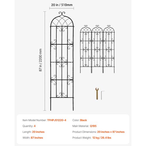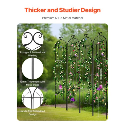 VEVOR Garden Trellis for Climbing Plants, 87 x 20 in, 4 Packs Rustproof Metal Garden Flower Trellis, Outdoor Climbing Rose Trellis Cucumbers Support, Decorative Clematis Trellis for Courtyards Lawns