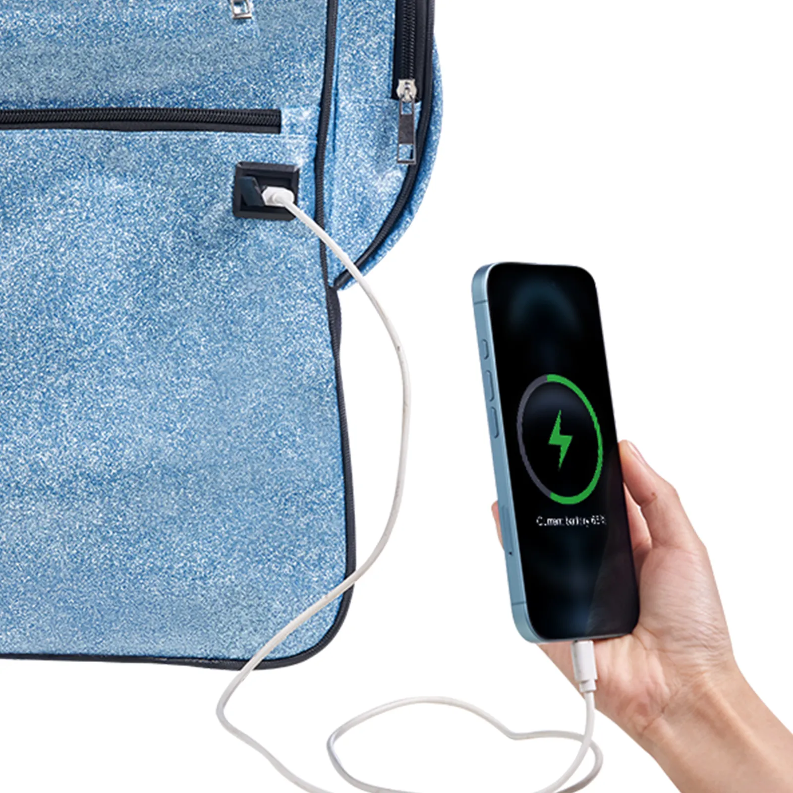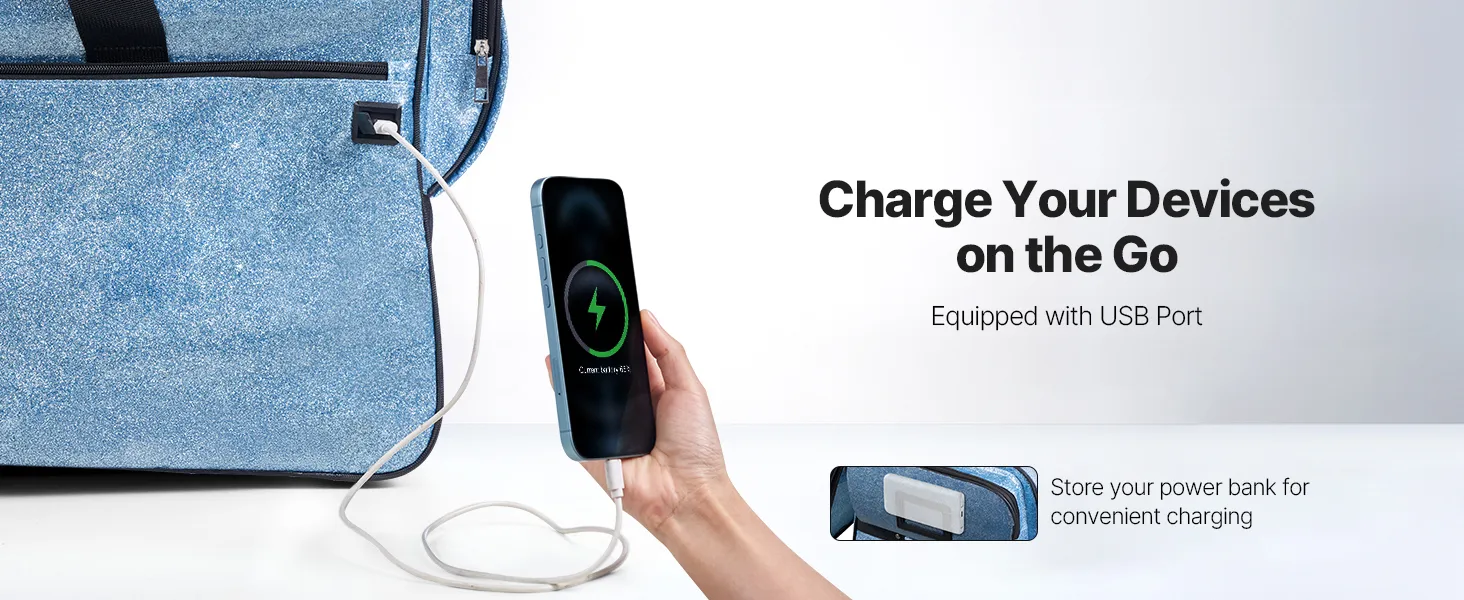 Store your power bank inside our dance bag with rack and quickly charge via the USB port anytime, anywhere.