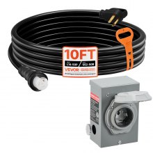 VEVOR 30 Amp Generator Cord and Power Inlet Box, 10 FT, 125/250V NEMA L14-30P to L14-30R Heavy Duty Extension Power Cord, SJTW 10 Gauge 7500W, Pre-Drilled Inlet Box, for Generator to House, ETL Listed
