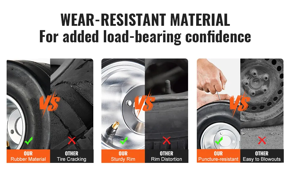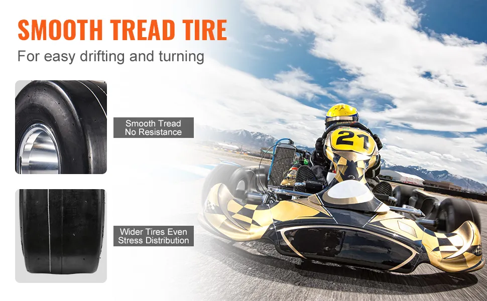 These tires offer great value for their price. They're not just cheap but also enhance the look of your go-kart. With a sleek design, they add slick style to any pedal car. The appealing design makes them an incredibly useful addition to every go-karting experience, whether racing or casual use. These tires blend cost and quality into an excellent balance that ensures you get the best performance without breaking the bank. Choose the VEVOR go-kart tires for a stylish upgrade that won't empty your wallet.