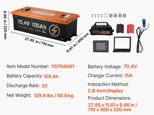 70.4V 105Ah Golf Cart Battery & Charger Kit Metal Case