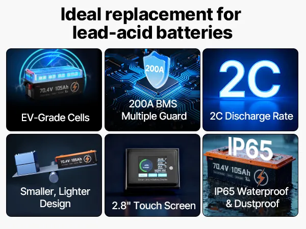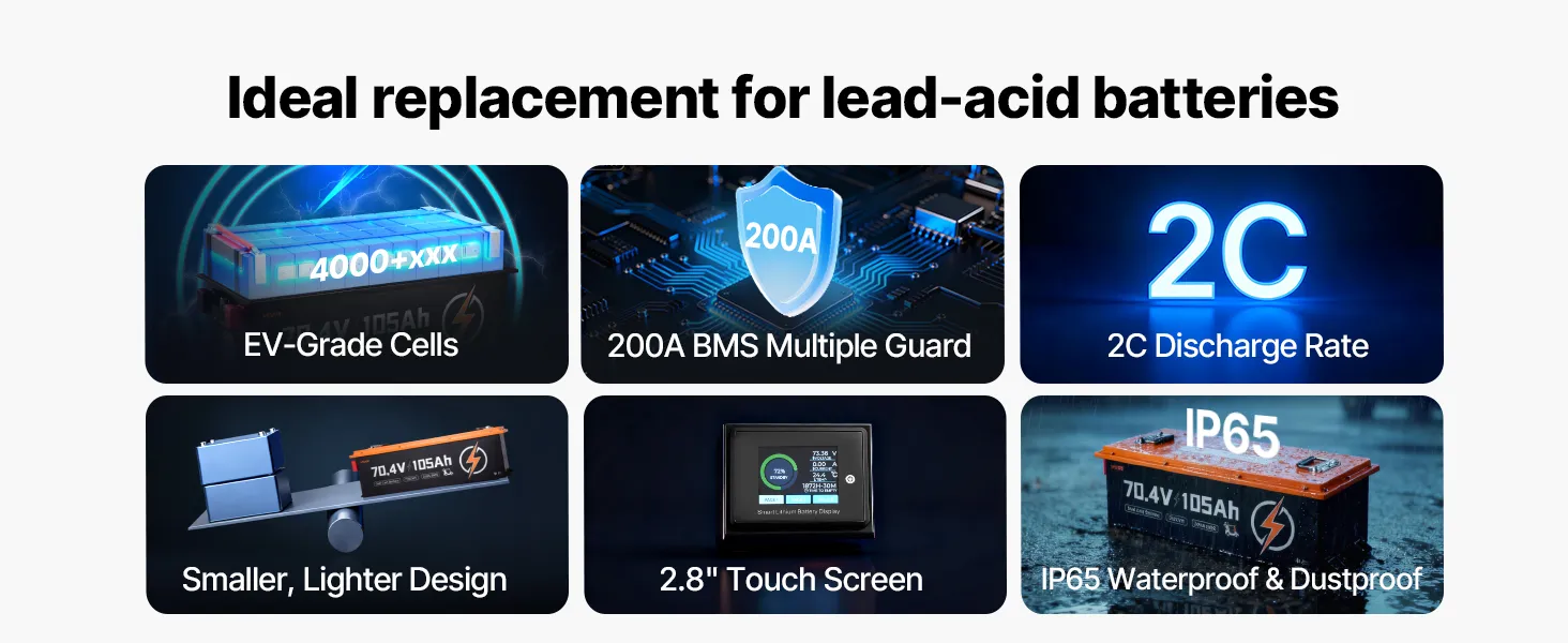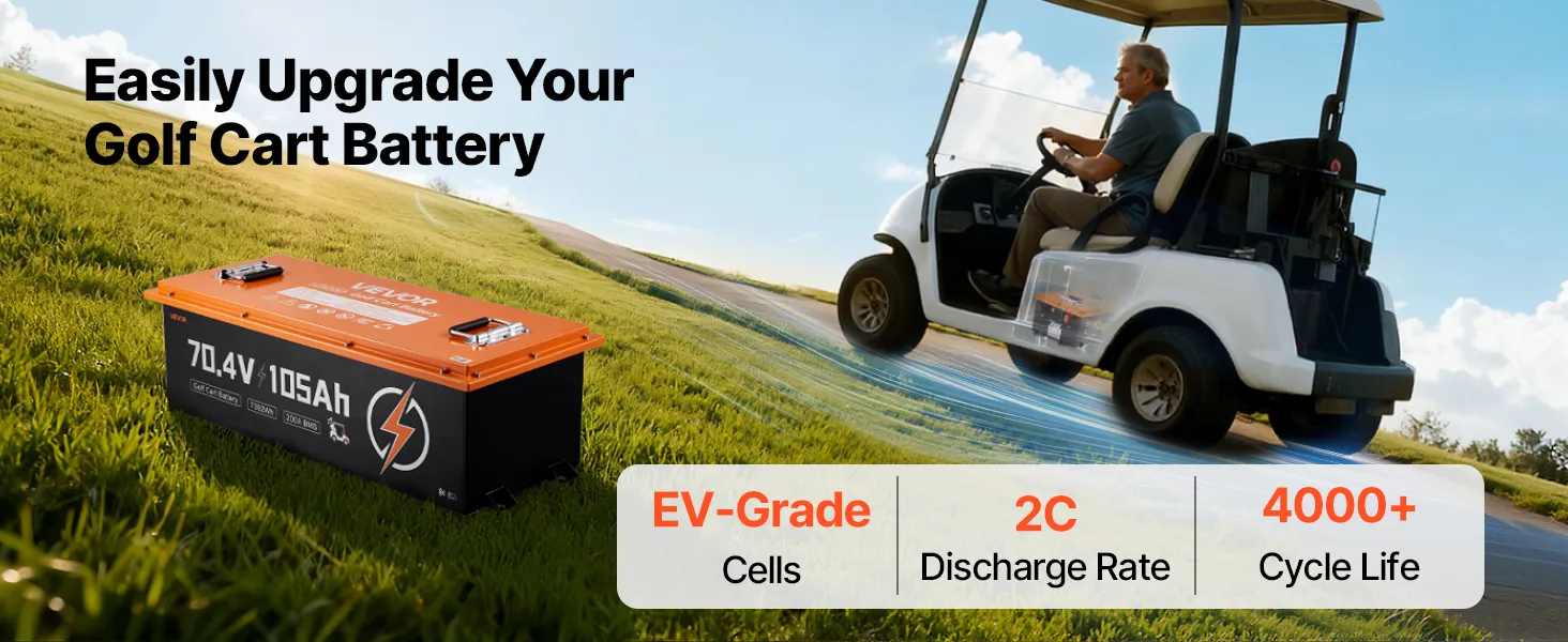 Go Farther, Play Longer: This 105Ah lithium golf cart battery is built with EV-grade cells, bringing stable power and extended driving distance. Say goodbye to range anxiety and hello to longer playtime on the course