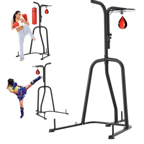 VEVOR 2 in 1 Punching Bag Stand, Steel Heavy Duty Workout Equipment, Adjustable Height Boxing Punching Bag and Speed Bag Stand, Freestanding Sandbag Rack, Holds Up to 400 lbs, for Home Gym Fitness