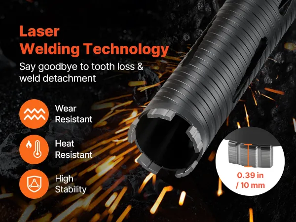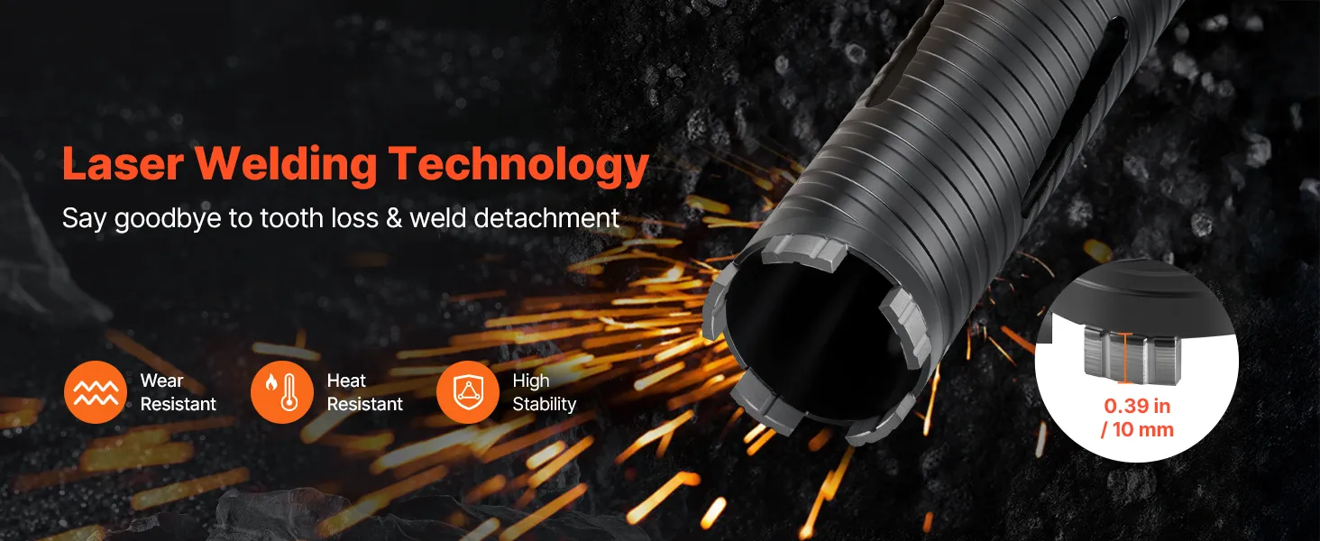 Durable & Sturdy: Crafted from quality carbon steel with high-precision welding, this concrete core drill bit boasts 95HRB hardness. It resists heat buildup during high-speed drilling or dry operations, avoiding blade detachment and enhancing longevity