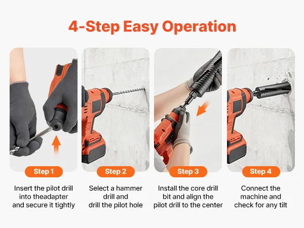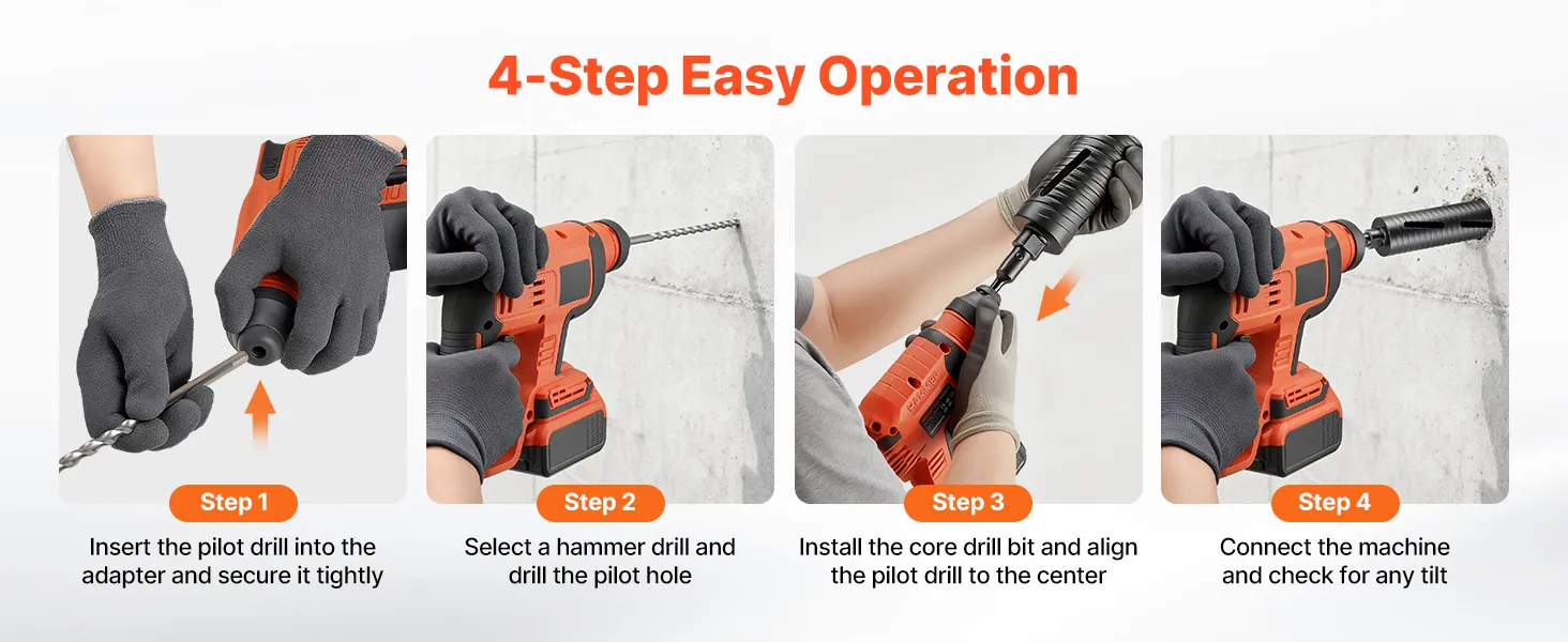 Precise Positioning: Our diamond dry coring bit comes with a pilot drill, no need for pre-drilling. The sharp tip quickly penetrates the surface, allowing for faster and more accurate positioning, ensuring smooth operation without switching modes