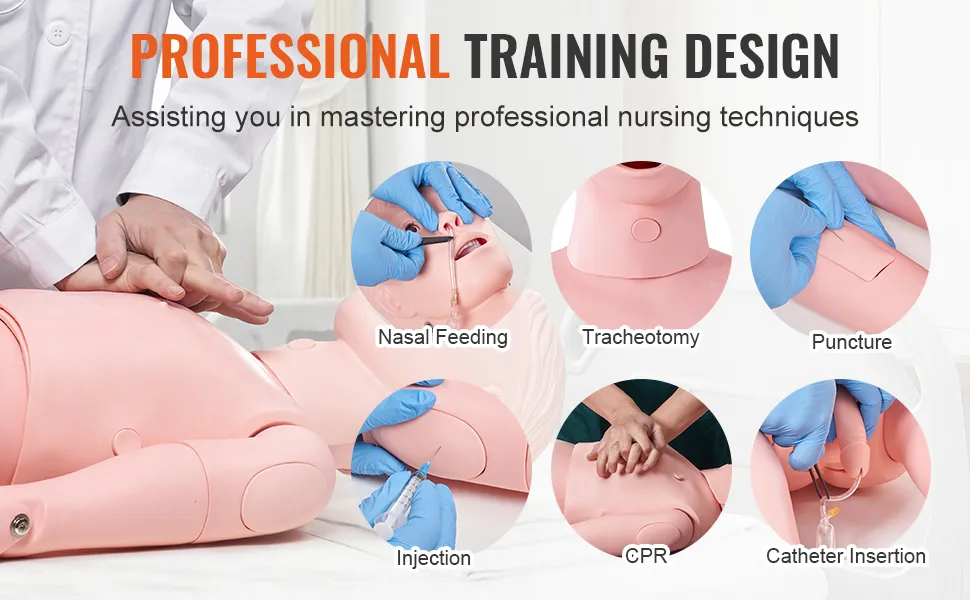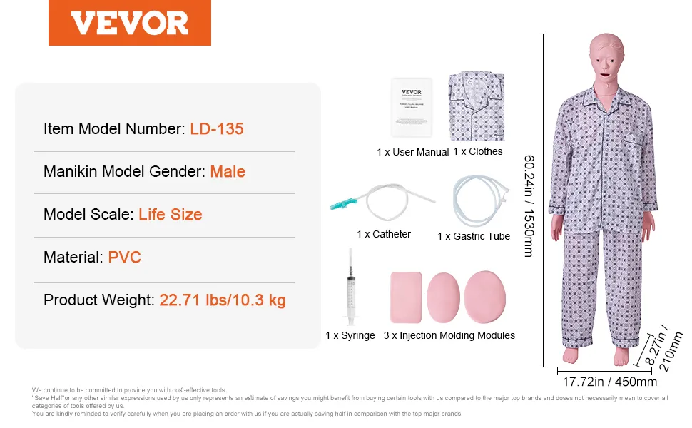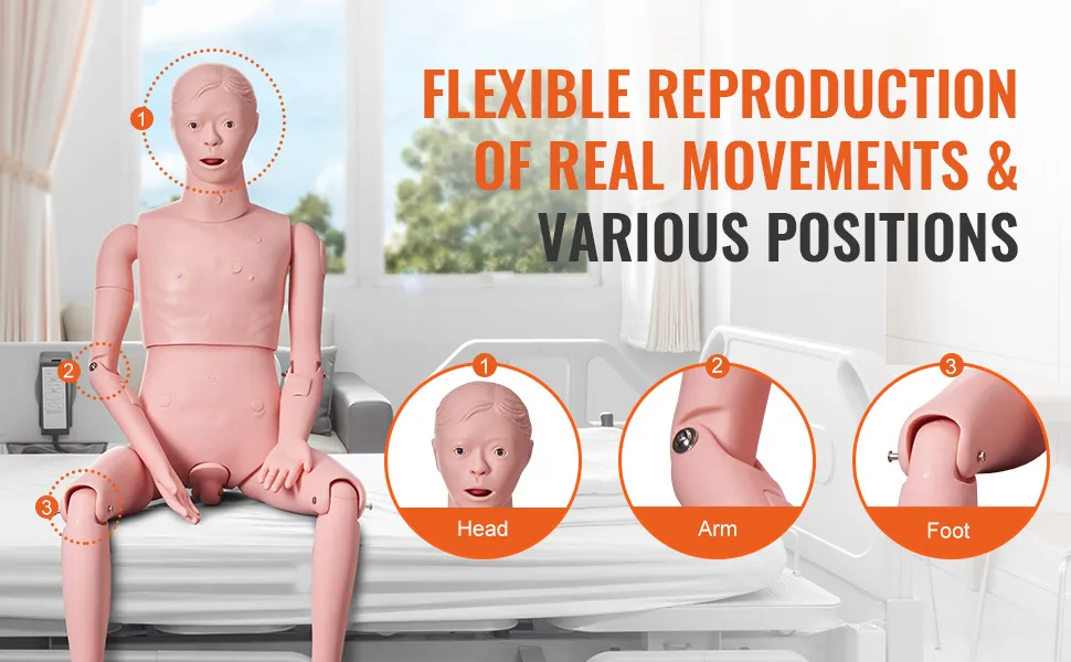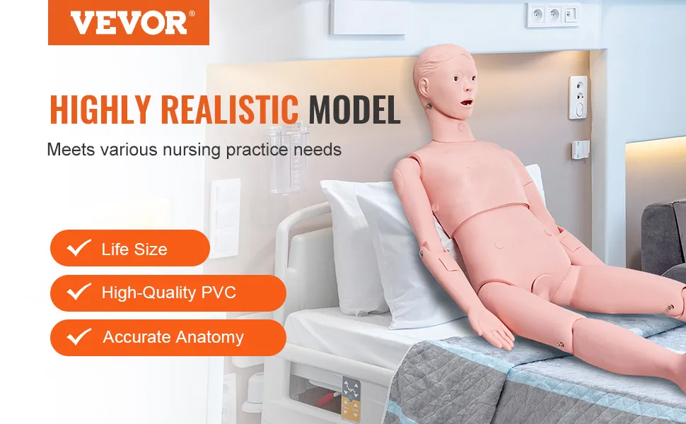 The VEVOR nursing training manikin is lightweight and portable. It weighs just 22.71 lbs (10.3 kg). This makes it easy to carry and move around. The model’s portability allows for flexible training sessions. You can take it to different locations for training. This is especially useful for mobile training programs. However, the lightweight design does not compromise on durability. The model remains strong and reliable, making it a convenient tool for nursing education.