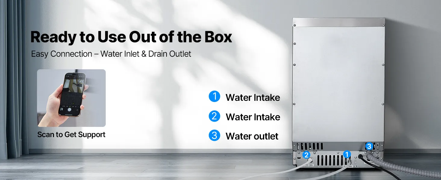 Quick Installation: No film removal required—this ice maker comes ready to use. Its sleek design integrates smoothly into kitchens, bars, or any space that needs flexible placement