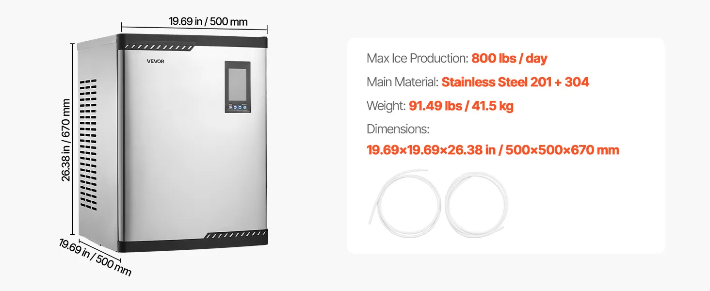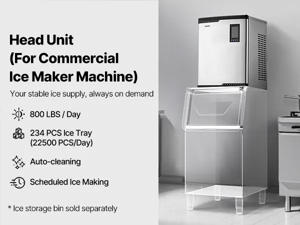 Large Ice Production: The commercial ice maker (head) can produc 800 lbs of ice per 24 hours, providing a continuous supply of ice in large quantities