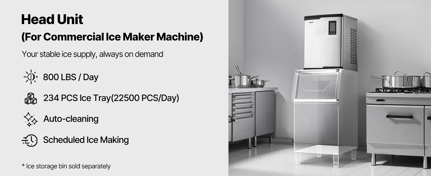 VEVOR Commercial Ice Maker Machine - Head, 800 Lbs/Day Stainless Steel Ice Machine with Scheduled Ice-Making, Self-Cleaning, Adjustable Thickness, Ideal for Restaurant Bar Cafe Hotel - Head Only